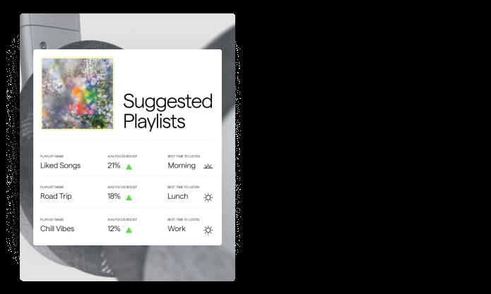Ideja iza ovih slušalica je ta da pokažu kada je korisnik manje fokusiran, te da se to znanje iskoristi da bi se izabrala muzika ili kako bi se shodno tim podacima napravio odgovarajući raspored. Te slušalice poseduju ANC režim (Active noise cancellation) i opcije kontrolisanja pokretom, Neurable obećava da će korisnik moći da promeni, pauzira, ugasi muziku uz treptaj ili pokretom klimanja glavom.
