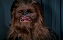 "Oh, the Wookiee here got stubborn about it." - ―Luke Skywalker og Han Solo, kort før ceremonien efter Slaget om Yavin.[src]