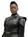 Along with Darth Vader, the Inquisitors pursued Kenobi to Mapuzo, where despite Kenobi's escape, the Third Sister captured Organa and took her to the Inquisitorius Fortress on Nur.[47] Kenobi rescued Leia, and although Vader intended to kill the Third Sister for her failure, she revealed that she had placed a tracker on Organa's droid, which caused Vader to spare her.[76] The Third Sister was later promoted to Grand Inquisitor and led the attack on the planet Jabiim in search of Kenobi, who at the time was with members of the Hidden Path, a network created to help the Force-sensitive hide from the Empire. Although Kenobi surrendered after offering some resistance and Vader was on his way, Obi-Wan convinced the Inquisitor to facilitate his escape with the others. The Third Sister was never truly committed to the Inquisitorius. She joined the Inquisitors and showed interest in hunting down Kenobi, a target of great interest to Vader, to get close to Vader and wait for the right moment to kill him. Her motive was revenge, for murdering her friends in the Jedi Temple on Coruscant after Order 66 was issued during the siege of the Jedi Temple. Reva attacked Vader when he arrived; however, the Sith Lord defeated her with relative ease and stabbed her. Vader revealed that he knew of Reva's true intentions, and the Grand Inquisitor, who had survived, arrived to take revenge on Reva, who was left for dead.[4]