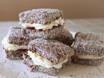 U šerpu sipajte mleko, čokoladu izlomljenu na kockice, kakao, šećer i margarin i zagrevajte uz mešanje, dok se sve ne rastopi i ne sjedini. Prohladite, pa kocke patišpanja kašikom spuštajte u topli preliv, da se natope sa svih strana. Spuštajte ih u tanjir sa kokosom, kako bi se kokos rasporedio sa svih strana. Poređajte ih na tacnu i stavite u frižider, kako bi se stegli. Možda ćete želeti da napravite kolače ružice od jabuka i lisnatog testa.