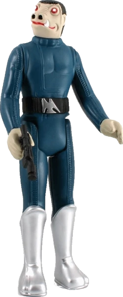 Blue Snaggletooth is the informal name of a rare Kenner action figure from 1978. The much-sought figure was made popular by Steven Spielberg's ET: Extra-Terrestrial, along with its 1978 Greedo figure counterpart. Released as part of the Sears Cantina Adventure Set, as well as a Sears exclusive mail-in two-pack with Greedo, the Snaggletooth figure was intended to represent the character Zutton. However, the only reference used for the figure was a partial black and white photograph of the character. As a result, the Snaggletooth figure included wore a uniform erroneously painted blue, had long legs, and wore boots and gloves. All versions of Snaggletooth from 1979 onward, including later Sears releases of the Cantina set, were corrected to the proper red color, with bare feet and hands and shorter legs. The value of the erroneous Blue figure ranges anywhere from $200-300 for a new, in-original-packaging figure to $50-150 for a used figure in decent but evidently-played-with condition.