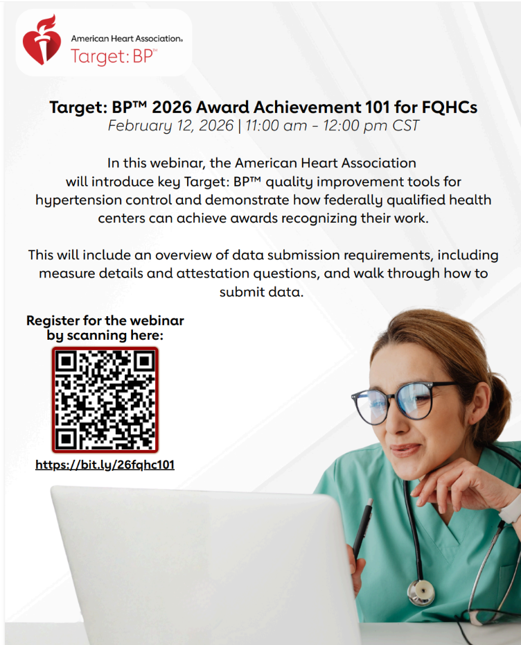 In this webinar, the American Heart Association will introduce key Target: BP™ quality improvement tools for hypertension control and demonstrate how Federally Qualified Health Centers can achieve awards recognizing their ... Read more