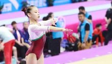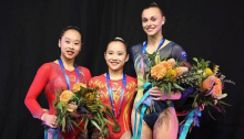 Three-time Olympian Vanessa Ferrari completed her comeback meet with the gold medal on floor in Melbourne, where first-year senior Zhao Shiting of China topped the field on beam.