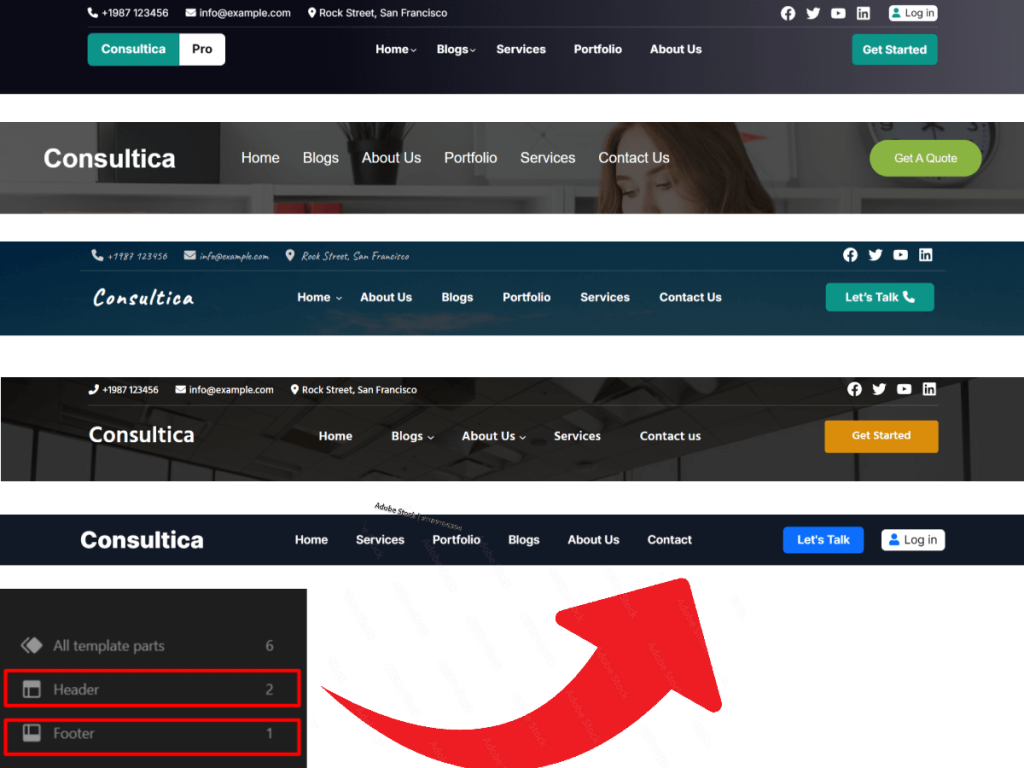 Choose from a variety of professionally designed header and footer layouts to create a unique and cohesive look for your website. Whether you prefer a minimalist style, a classic navigation bar, or a feature-rich layout, you can easily customize each design to suit your branding and structure needs—no coding required.