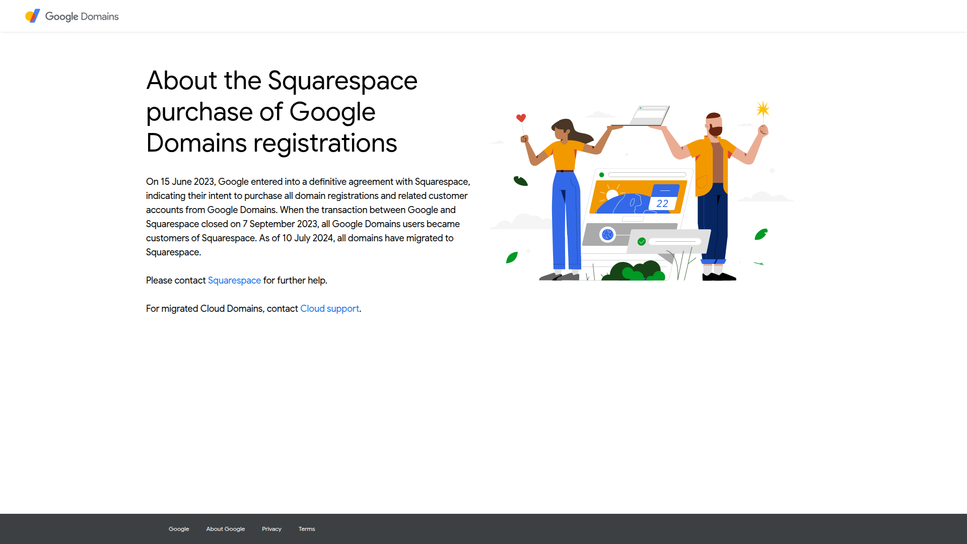 What was Google Domains? Google Domains was a domain registration service launched by Google around 2015 that let users purchase and manage custom domains in one place. In June 2023, Squarespace acquired Google Domains, and by 2024, all customer accounts and domains had migrated to Squarespace's infrastructure. The service at domains.google.com is no longer operational.