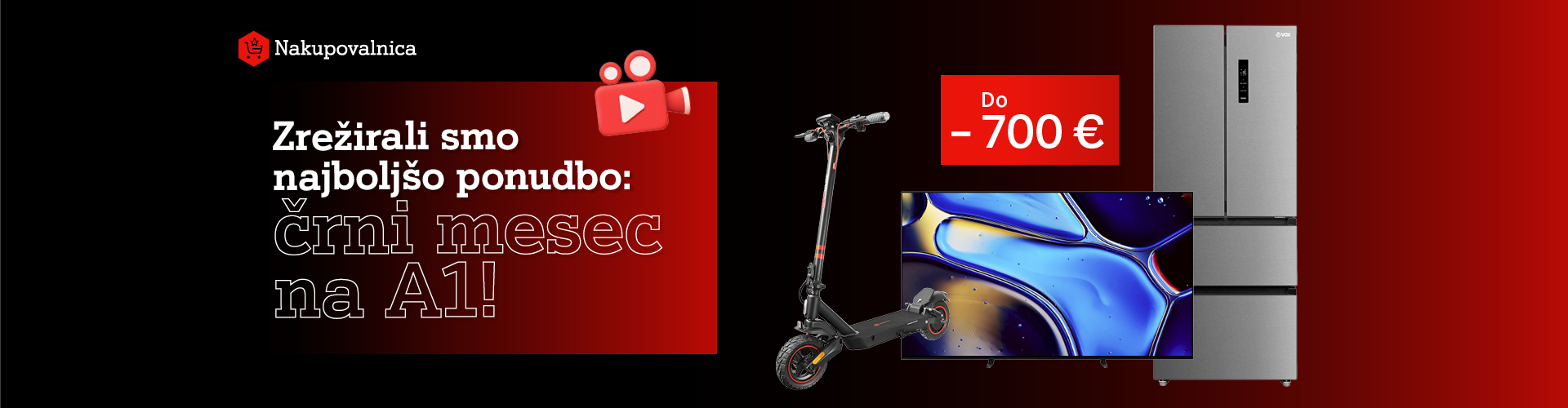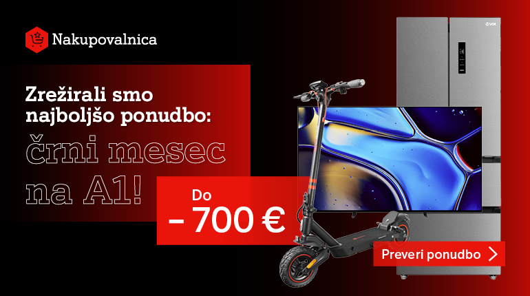 Posebna ponudba velja v obdobju od 2. 10. 2025 do 31.10.2025 oz. do razprodaje zaloge in vključuje 270 EUR popusta na Panasonic TV 4K TN-55W70AEZ Google TV. 200 EUR popusta na Beko Ameriški hladilnik GN163140SN. 130 EUR popusta na Samsung Hladilnik Bespoke RB34C7B5E12/EF, bel. 120 EUR popusta na Acer Prenosnik Aspire A15-51M-90LX i9. 110 EUR popusta na Sušilni stroj HOOVER ND4 H7A1TSBEX-S. SLIM. 100 EUR popusta na TITAN ARMY monitor QD OLED G27P8 in Acer Prenosnik Aspire AG15-42P-R7KZ R7. 90 EUR popusta na Samsung Pralni stroj WW90DG6U2FLKU4. 60 EUR popusta na Gigabyte gaming ukrivljen monitor GS32QC QHD/165HZ in Računalnik ANNI Office Advanced R5-5600G / Radeon / 16 GB / 1 TB / W11P. Uporabnik ob takojšnjem plačilu prejme še dodatnih 10% popusta na akcijsko ceno izbrane naprave. Vrednost prihranka, prikazane pri posameznem izdelku predstavlja razliko med redno ceno izdelka, ter akcijsko ceno znižano za 10% popusta v primeru enkratnega plačila. Do ponudbe so upravičeni vsi naročniki A1, ki v času trajanja ponudbe sklenejo Pogodbo o nakupu opreme na obroke. Če je cena naprave do 50 EUR, je možen nakup le ob takojšnjem plačilu. Za naprave nad 50,01 EUR, je možno tudi obročno plačilo, pri čimer je razpoložljivo število obrokov razvidno pri posamezni napravi, objavljeno na https://www.a1.si/nakupovalnica. Vsi obroki, tudi prvi, se obračunajo na A1 računih. Popusti ne morejo biti izplačani v gotovini ali se prenesti na tretjo osebo ter niso združljivi z ostalimi popusti in akcijami. A1 Slovenija si pridržuje pravico do spremembe pogojev za odobritev nakupa opreme na obroke, cen opreme in ponudbe. A1 Slovenija si nadalje pridržuje pravico, da ob naročilu opreme od naročnika zahteva instrument zavarovanja plačila ali druge dokumente, iz katerih je razvidna plačilna zgodovina naročnika. Pogodbo o nakupu opreme je možno skleniti na kateremkoli prodajnem mestu A1, v spletni trgovini A1, prek telefonske prodaje ali prek prodaje zunaj poslovnih prostorov. Pogodba o nakupu opreme je sklenjena in velja, ko jo podpiše zadnja izmed pogodbenih strank in ko jo prejme zadnja izmed pogodbenih strank. Cene opreme so v EUR in vključujejo DDV. Cene veljajo v trenutku oddaje naročnikovega naročila. Pridržujemo si možnost napak pri tehničnih specifikacijah in opisu.