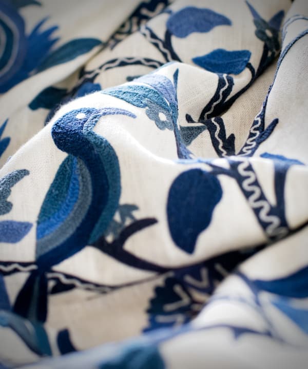 Narrative and tonal designs work beautifully as curtains, where the scale and repetition of the embroidery can be fully appreciated. Ivory colourways, in particular, bring depth and softness to larger expanses without overwhelming the space.