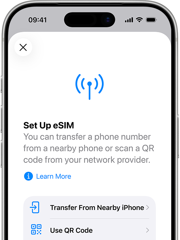 ¹ iPhone Air is activated with an eSIM and does not support a physical SIM. Use of an eSIM requires a carrier that supports eSIM and a wireless service plan. See your carrier for details. To learn more, visit apple.com/esim. (opens in new window)