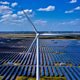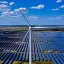 (Photo: A wind turbine and solar panels in Yancheng, China. Credit: Alex Plavesvski/ EPA)
