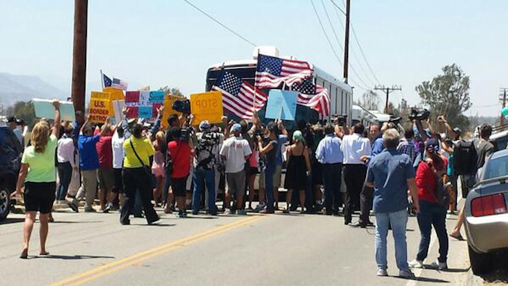 Residents of Murrieta, Calif., were carrying signs that read "Return to sender" and "Bus illegal children to the White House."