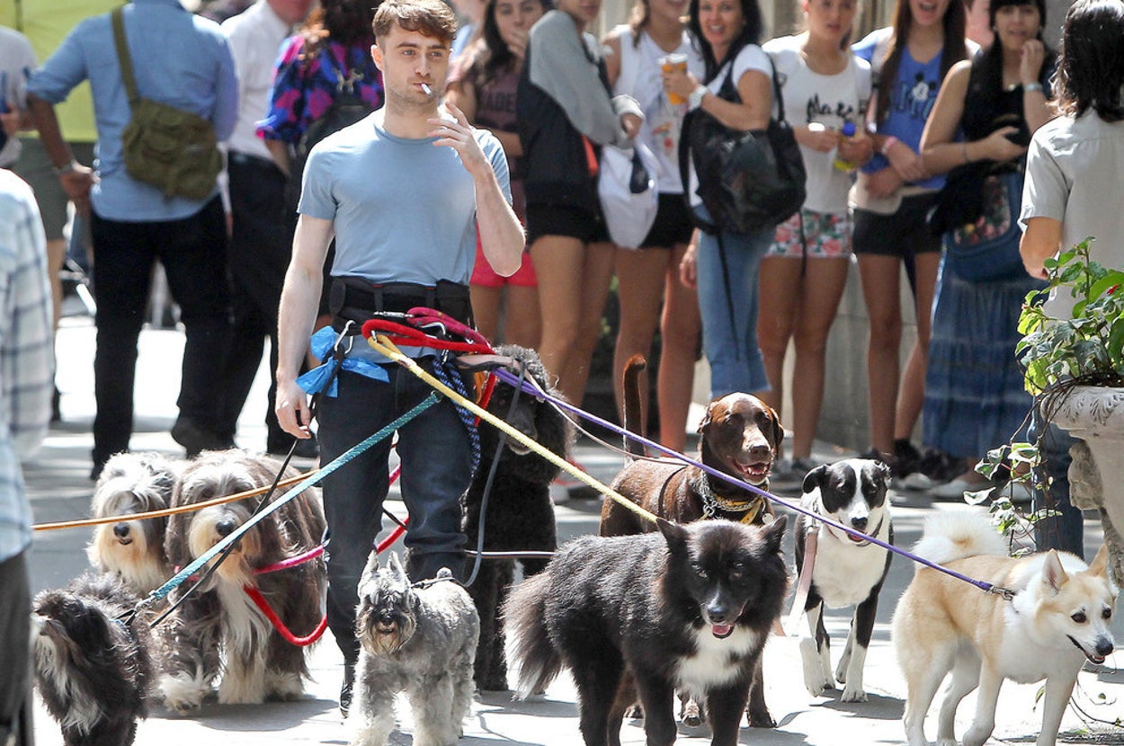 These Pictures Of Daniel Radcliffe Walking 12 Dogs While Smoking A Cigarette Are Perfect