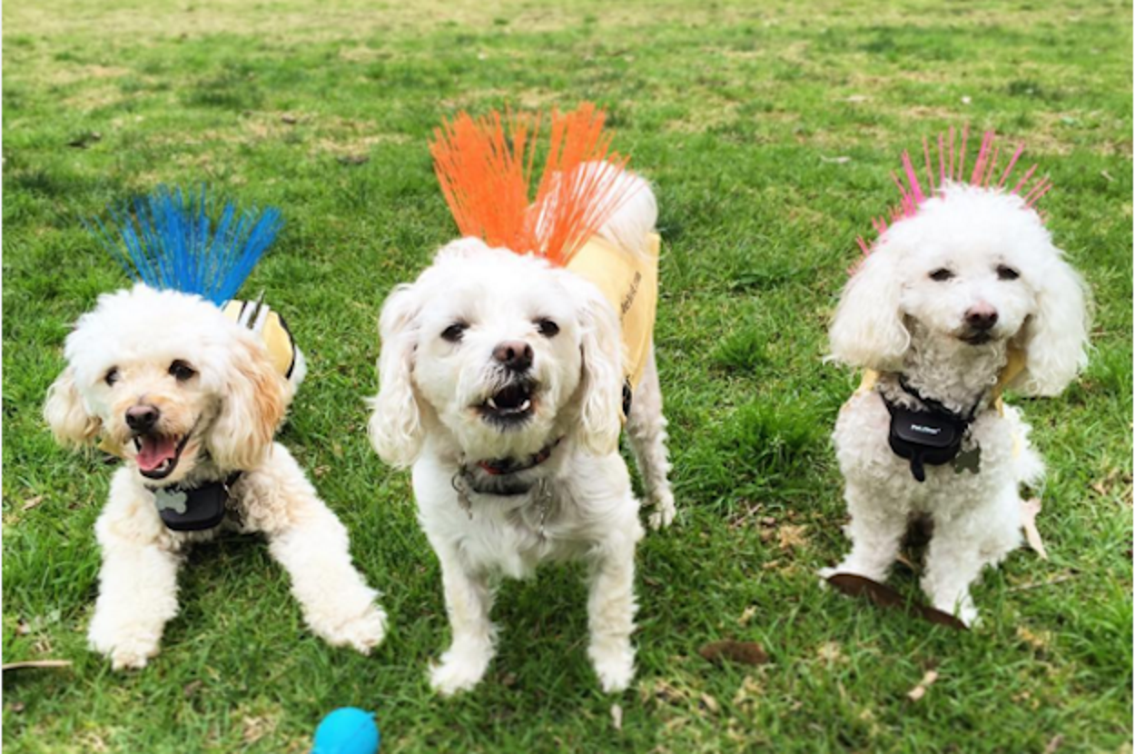 The idea is to literally make your dog look too crazy for a coyote to attack.