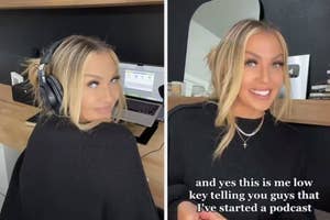 Her debut podcast launched on Wednesday, and she talked about her upcoming jury trial after she was sued by the state of Texas.