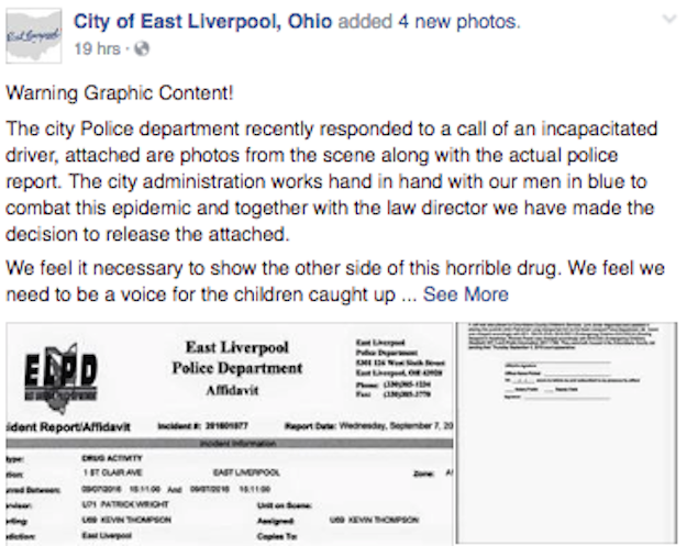 "We feel it necessary to show the other side of this horrible drug," police said. WARNING: This image may be considered disturbing to some readers.