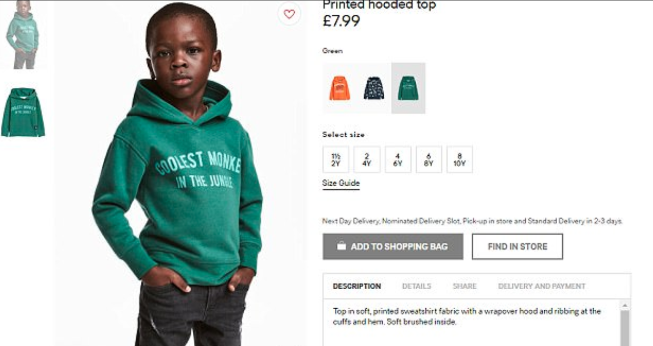 People called for a boycott after seeing the hoodie, which reads "coolest monkey in the jungle".