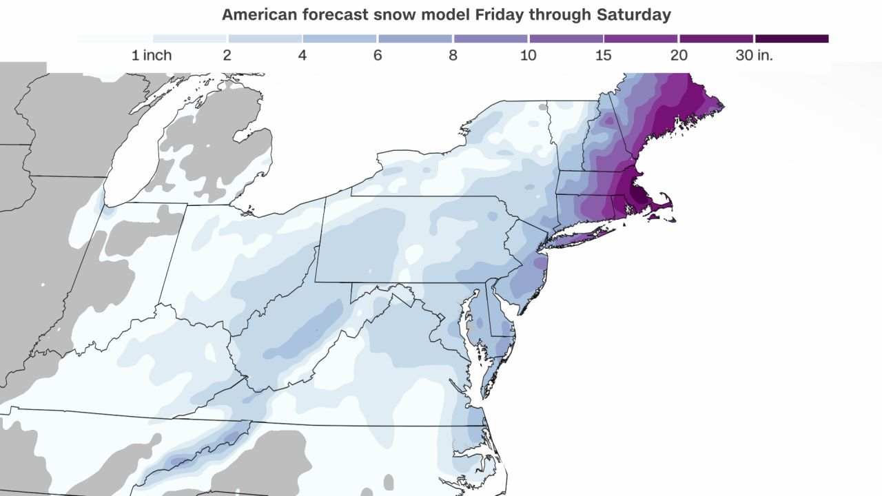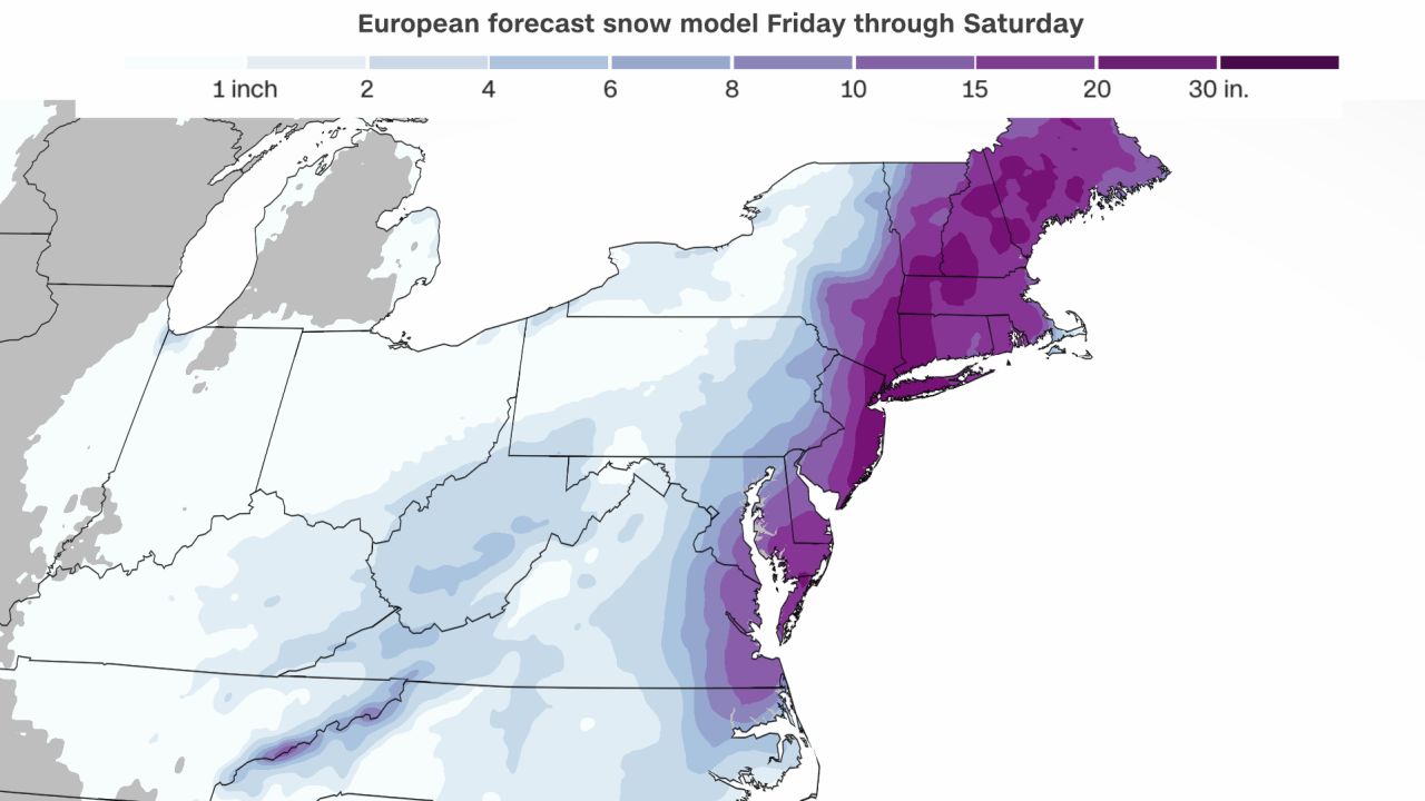 The storm is expected to move up the East Coast Friday into Saturday – its location in relation to the coast will determine whether there’s a wintry mix or a foot of snow.
