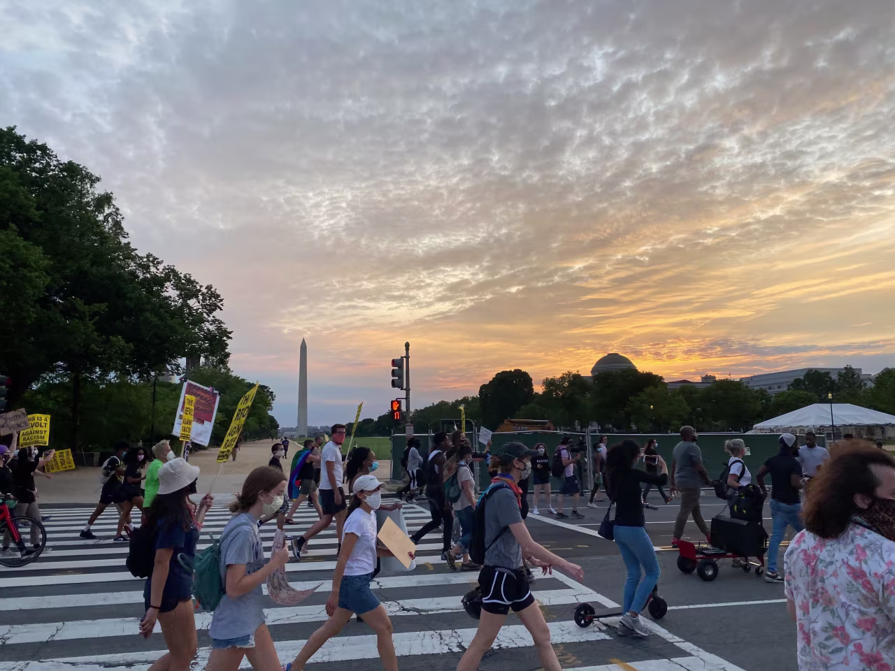 They were seen carrying signs with the names of victims of police violence, including George Floyd, Breonna Taylor, and Ahmaud Arbery.