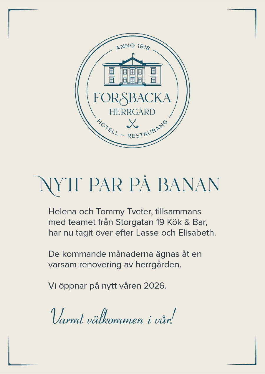 Alldeles intill Forsbackas 9:e green och ett stenkast från 1:a tee ligger Forsbacka järnbruks gamla huvudbyggnad anno 1747. Byggnaden, som är unik för sin tidsepok samt K-märkt, utgör idag Hotell Jägmästarflygeln. I hotellet finns totalt 13 rum med badrum och sköna sängar, 9 tvåbäddsrum och 4 enkelrum. I nästan alla rum står de gamla kakelugnarna kvar, och rummen är inreda i tidstypisk stil. Samlingslokal både i första och på andra våningen.
