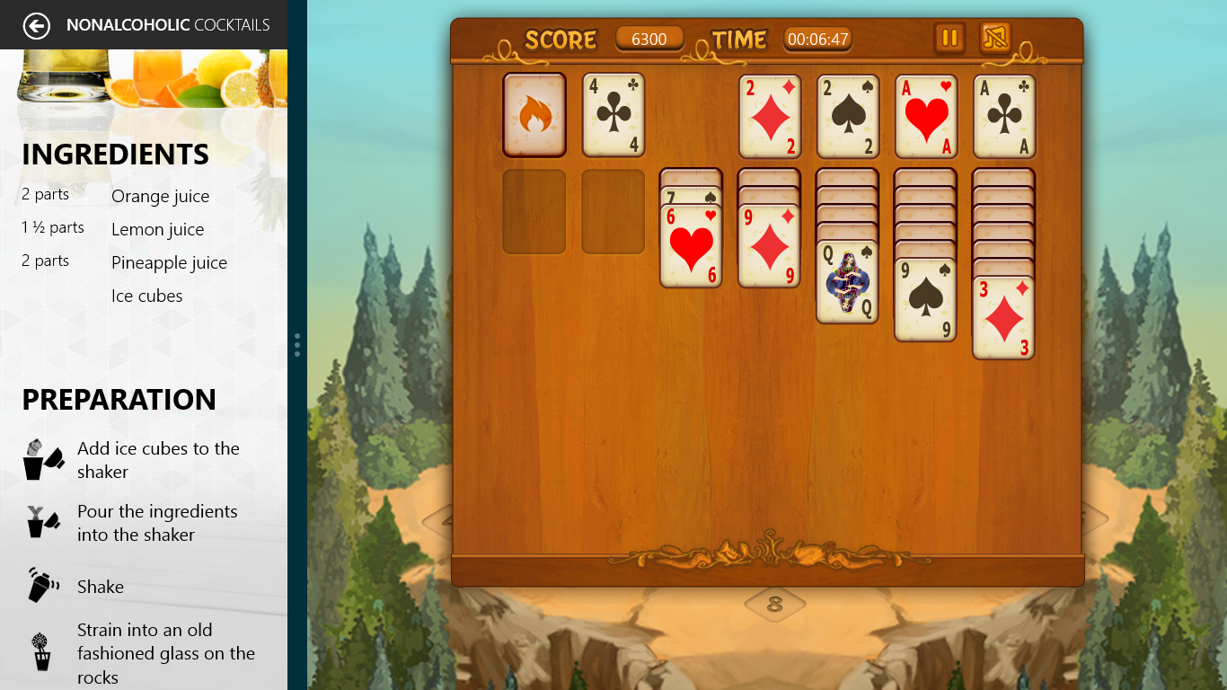 When an app is placed on the side of the screen it finds itself in 'snapped' mode, while the second app, reduced to partial screen view, is in 'filled' mode. Solitaire Harmony looks great in 'filled' mode, as this screenshot demonstrates: