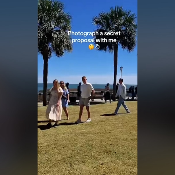 Bell appears confused at first as she reads Ace's onesie, then looks at the camera before noticing Kimbrough knelt beside her, holding a ring.