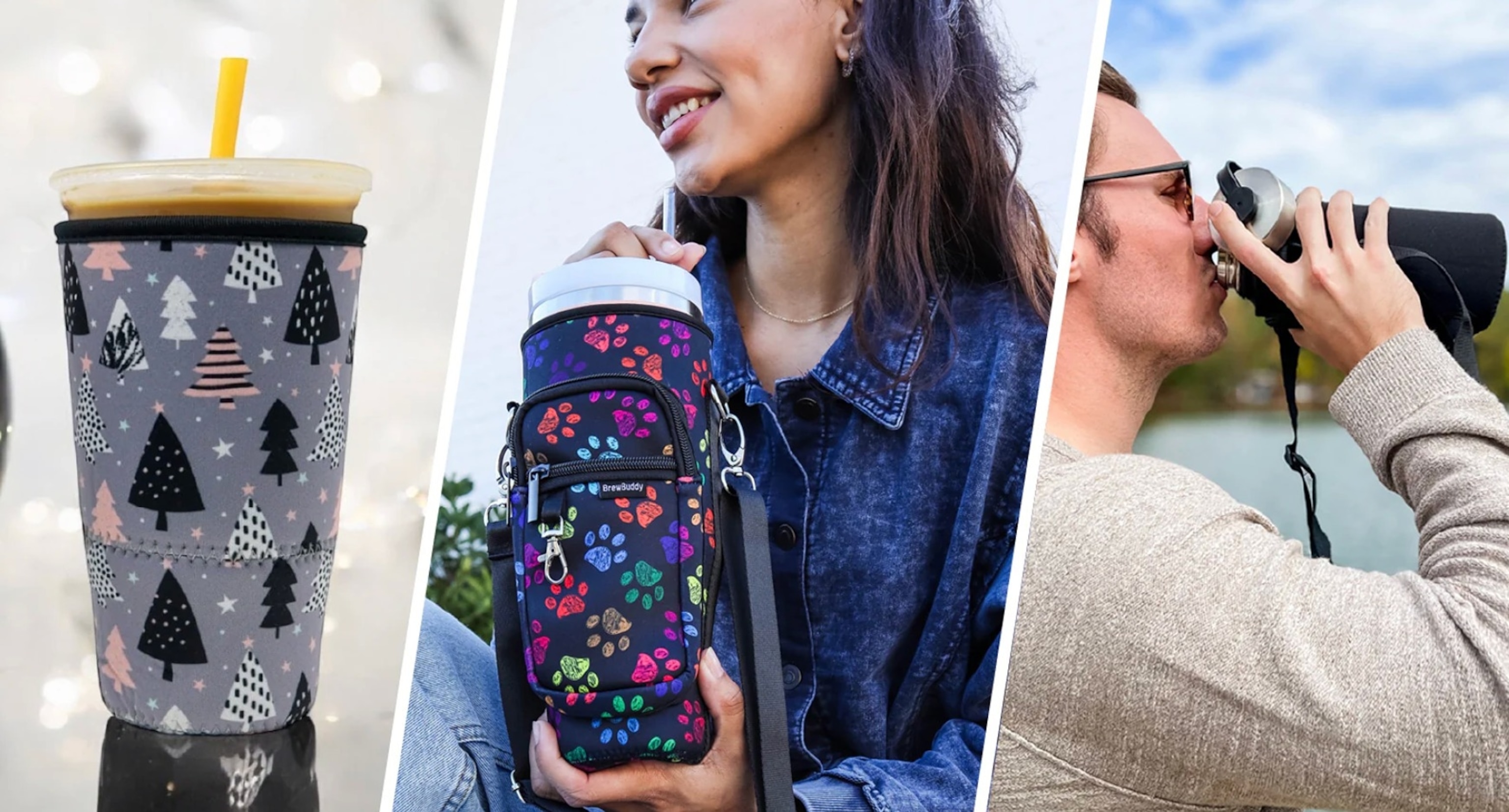 Brew Buddy: Tumbler and Crossbody Bags and Neoprene Sleeves