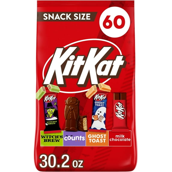 Kit Kat Assorted Flavored Wafer Snack Size Halloween Candy, Bag 30.2 oz, 60 Pieces