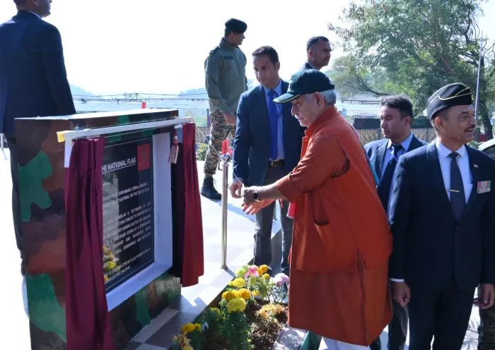 Lieutenant Governor inaugurates 108-feet national flag mast in J&Kโs Akhnoor on Vijay Diwas