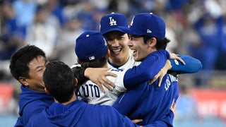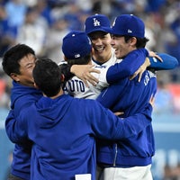 MLBが大谷翔平、山本由伸、佐々木朗希の“あの写真”を投稿。「始まり」と「終わり」で優勝を祝福