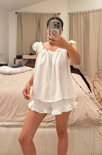 A set of ruffled pajamas made to resemble the $99 Piyama set