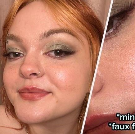 HOWEVER, you wouldn't be able to tell that my base makeup or eyeshadow had been worn for about 10 hours at this point because my skin looks...dare I say...perfect? As I mentioned, I sweat a lot, which usually leads to under-eye creasing and my faux freckles disappearing...but not with this spray. I've used the Milk Makeup setting spray and Urban Decay's All-Nighter , which are both considered high-end...and I'm still reaching for this drugstore find every time.