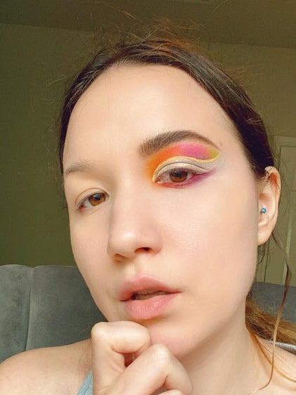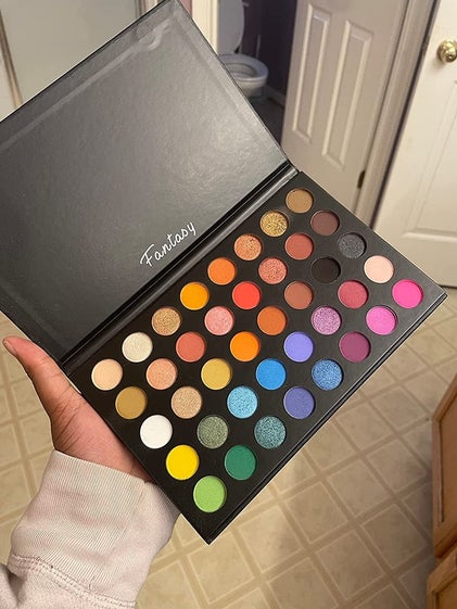 Promising reviews: "Clearly time I got a new eyeshadow palette. Sargent Freddie Mercury (my not-even 4-pound bunny) made it his mission to destroy my James Charles overpriced palette. This palette is the same quality, maybe even nicer. This eyeshadow was put on at around 3 p.m., and it's almost 1 a.m., the 'highlight' stayed on my nose even with my mask on through a whole day of work. That blew my mind." — Daniel T Adams