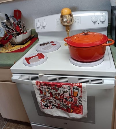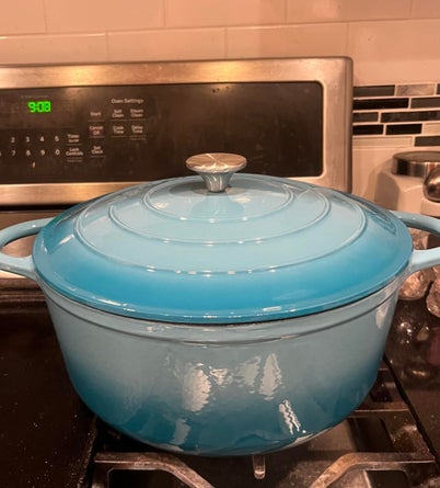 Promising review: "This is a great enameled cast-iron pot — the green I ordered is a bit darker than the photo portrayed, but it is a heavy-duty Dutch oven, every bit as great as my daughter’s Le Creuset." — LisaShoe