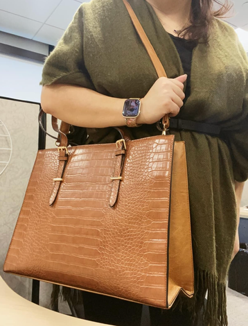 Promising review: "It’s much more spacious than it looks. It’s very sleek and stylish. I use it as my work bag, and I find that it looks professional and has enough space for all of my stuff. I carry a laptop, pencil case, two books, makeup bag, water bottle, wallet, lotion, phone, and laptop charger, and other small miscellaneous objects. Still plenty of space. And when you carry it, it doesn’t feel bulky or cumbersome. The bag does sag a bit after use. But has held up to wear and tear. I would recommend." — Su