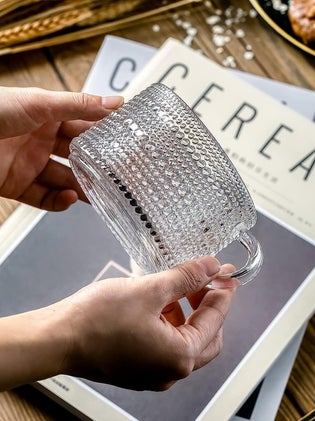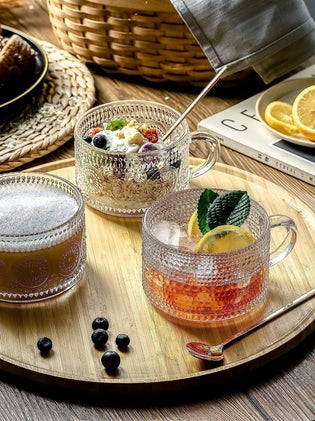A set of stunning vintage-inspired glass coffee mugs that add a pop of elegance