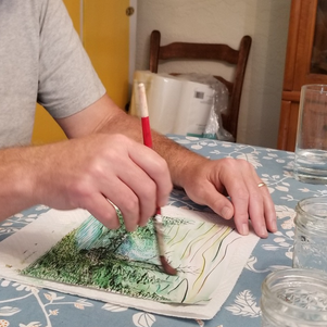 A Bob Ross Paint With Water book so they can reveal some Happy Little Trees with just water and brush strokes