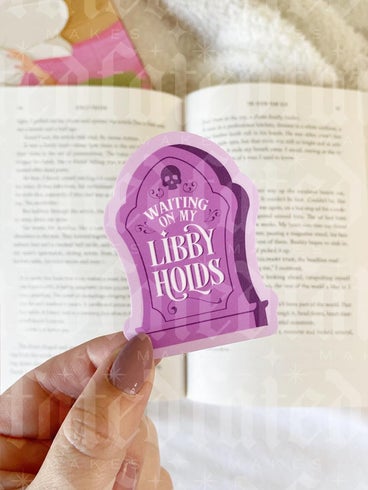 A wildly relatable Libby holds sticker they can put on their ereader case as a reminder to check Libby