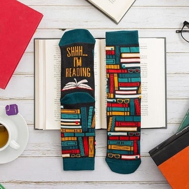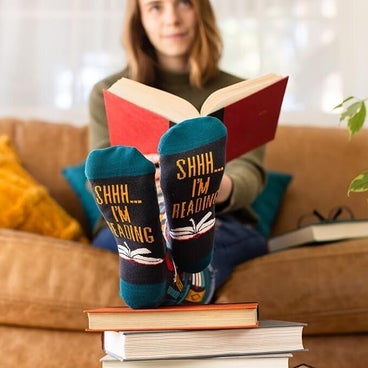Some socks with a message so they don't get interrupted RIGHT when the book gets to the good part