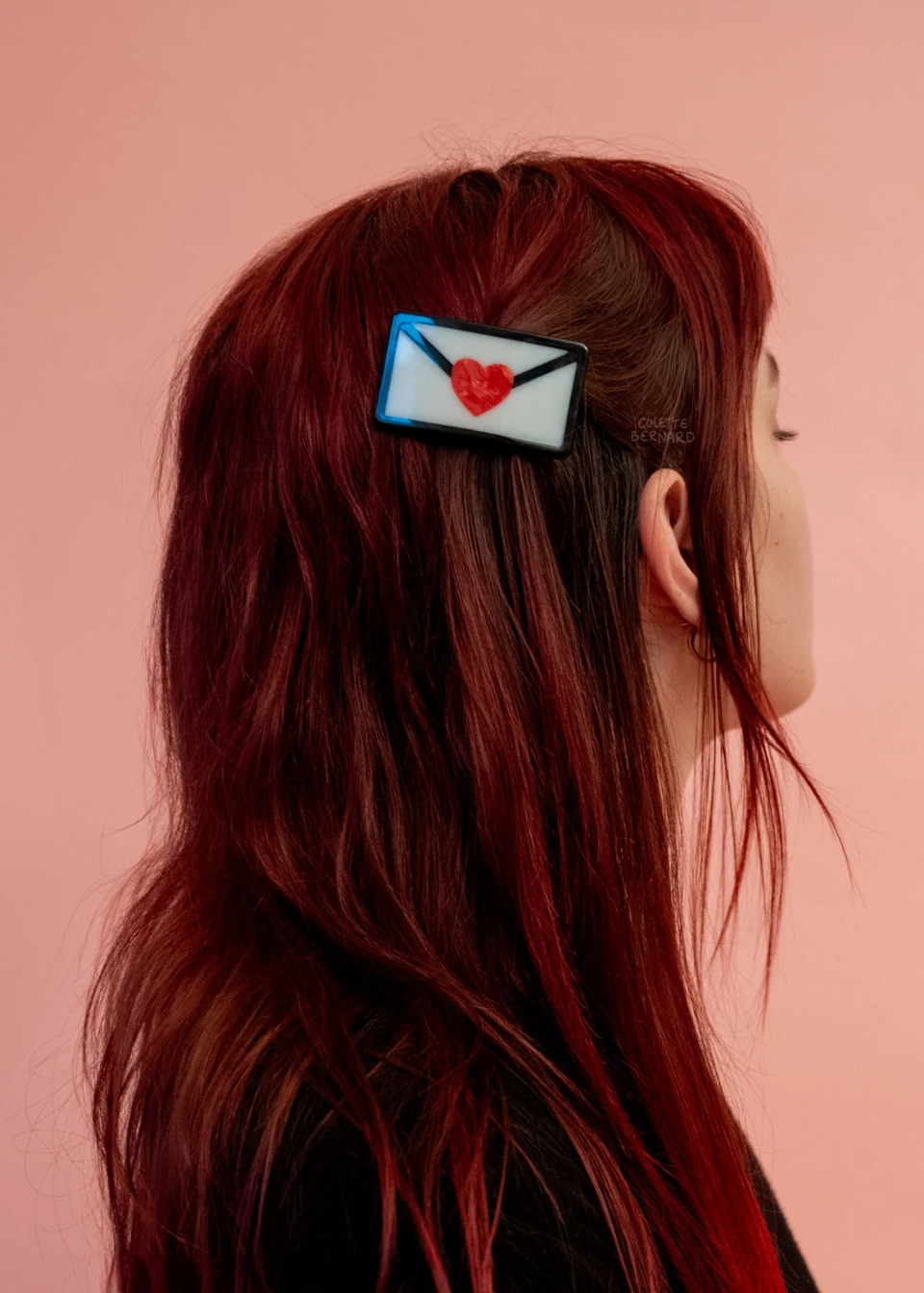 A cutie love letter hair clip you've gotta buy in multiples because once your friends see it, they're gonna want one too