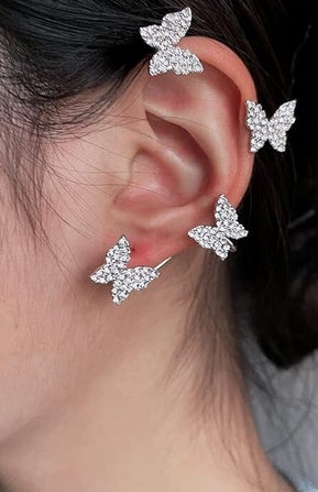 Promising review: "Absolutely love these butterfly ear cuffs! They are even more beautiful in person, and the rhinestones catch the light perfectly. The clip-on design is comfortable and secure, so I don't have to worry about them falling off. They're an easy way to add a bit of sparkle to any outfit." — Amber green