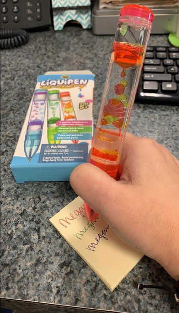 A liquid bubbler pen as a lava lamp–like option to take with them on the go
