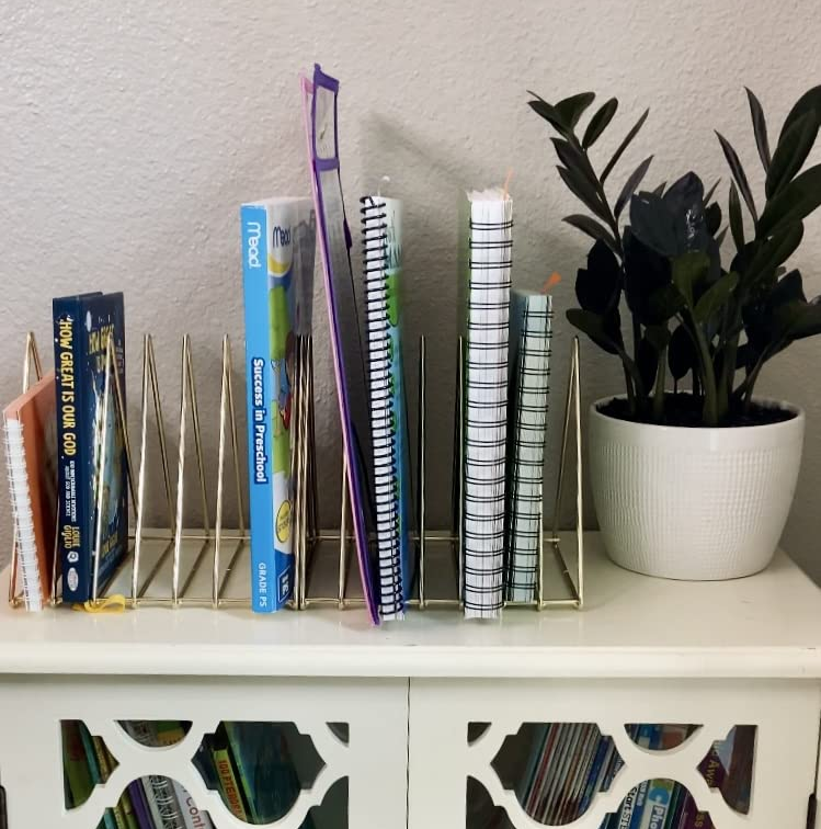Promising review: "This is perfect. Sturdy with enough slots to hold a laptop, Chromebook, and iPad mini for charging. Also use it to hold some file folders and composition notebooks. It’s really made a difference in my office." — A.L.