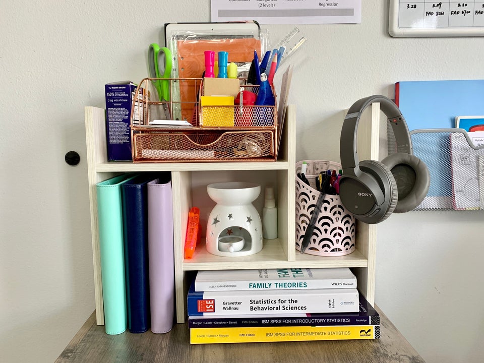 Promising review: "I bought this desk shelf because I needed more storage on top of my desk. This was perfect!! The wood is a nice quality and not crappy at all!!! The shelves assemble into two pieces, so they are adjustable in size, which is perfect for what I needed! I definitely recommend! Also super easy to put together (took me 10 minutes)." — Zoey