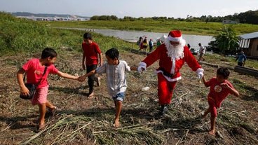 More than 600 children gathered in Catalao,Brazil, to receive presents from Santa, who endured the tropical heat dressed in his traditional red suit.