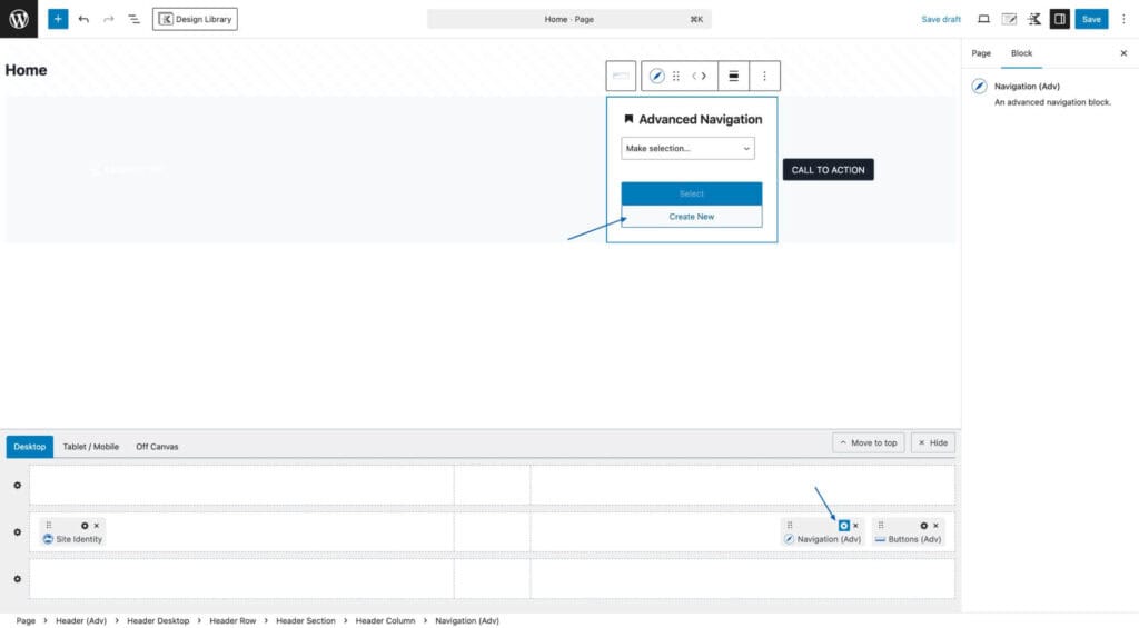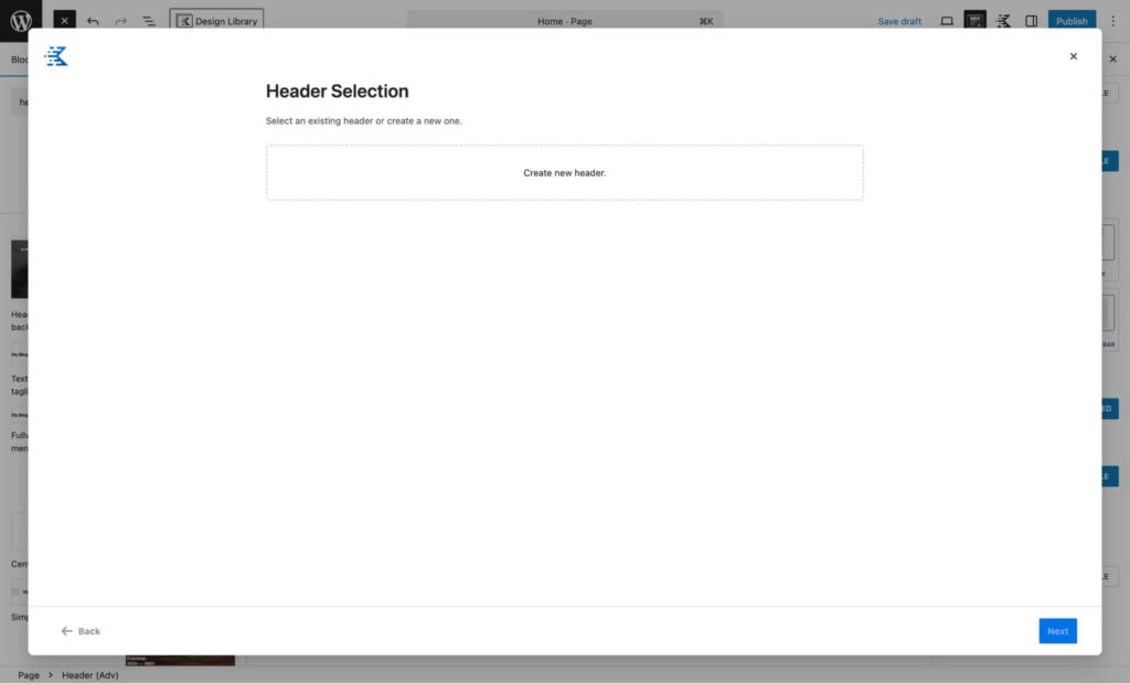 In this step, you’ll add a custom header using the Header (Adv) block, which comes with the free Kadence Blocks plugin.