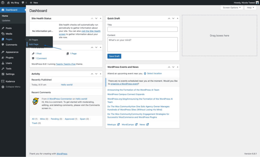 From your WordPress dashboard, go to Pages in the left-hand menu and click Add New.