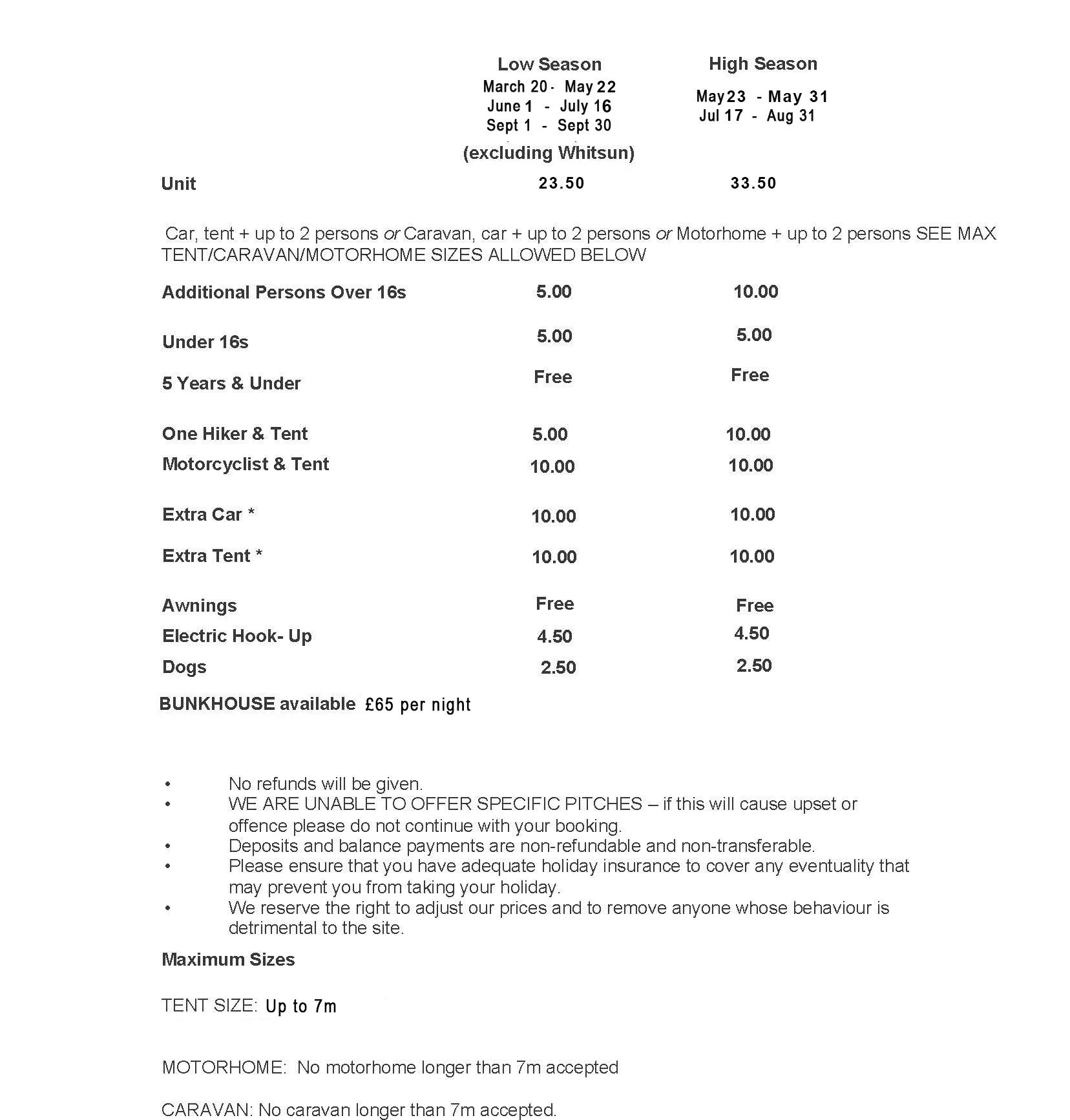 If we have not heard from you within 24 hours of your expected arrival we will assume you no longer require the pitch and will release your booking.