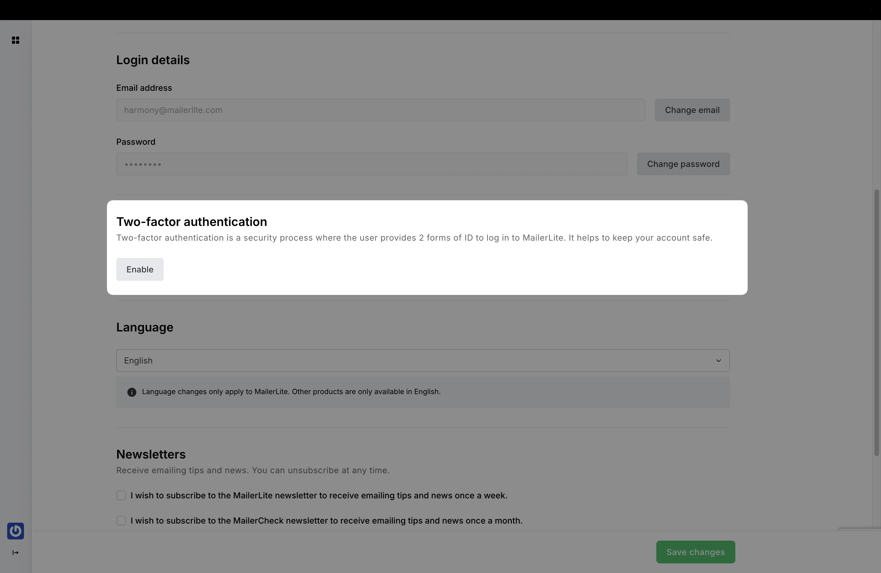 3. Follow the instructions on the screen and link your authenticator app with your MailerLite account by scanning the QR barcode provided on your MailerLite profile page.