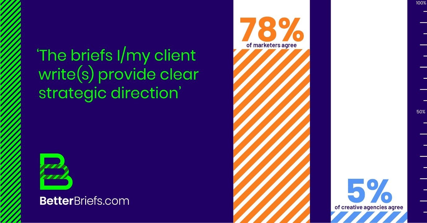 Forget all these caveats. What the bar chart above shows is an astonishing discrepancy between an industry of deluded marketers and the unfortunates on the other side of the net who have to take this empty BS and somehow make sense of it. In one room there are 40 marketers and all but nine of them think they write clear, strategic briefs. Winning.