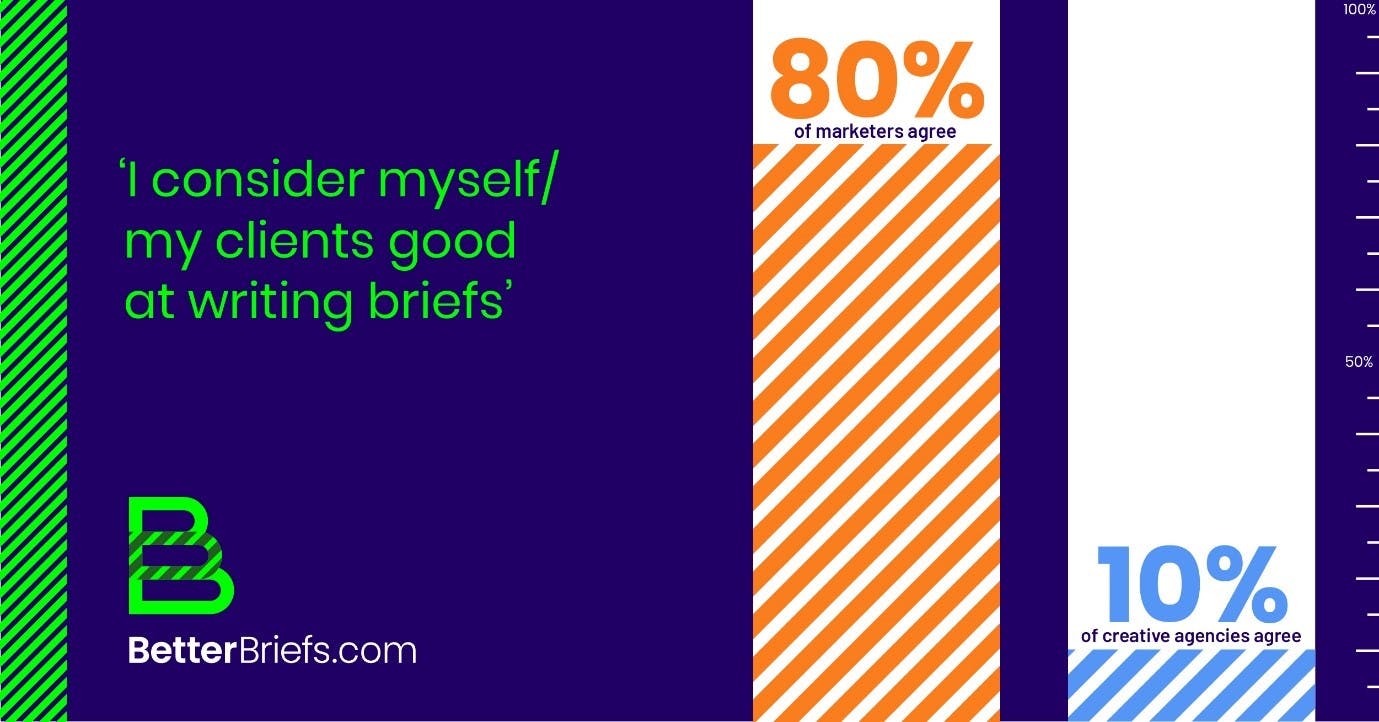 And it’s easy to see why. Dunning-Kruger is in full effect across our industry. Marketers are so bad at briefing they have no idea they are bad at it. In fact, it’s even worse than that. The Better Briefs data shows that, in that room of 40 marketers, in which 31 are strategically hopeless, 32 of them think they are rockstars when it comes to briefs.