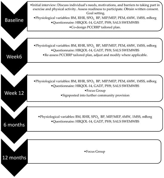 Aim: Post-COVID condition (PCC) is largely considered the biggest public health emergency in recent times. The role of exercise therapy in PCC is currently unknown, and evaluative studies are currently lacking in this area. This study therefore aimed to evaluate the effects of a football club community trust exercise rehabilitation programme on physical function and quality of life in individuals with PCC. Method: A mixed-methods retrospective design was employed, utilising a framework to assess the programme’s reach, effectiveness, adoption, implementation, and maintenance (RE-AIM). Quantitative data (questionnaires and physiological assessments) were collected at baseline, 6 weeks, and 12 weeks during the programme, and at 6 months post-intervention (n = 7). Qualitative data were gathered through semi-structured focus groups at week 12 (n = 7) and 12 months (n = 5) post-intervention. Quantitative data and qualitative data were analysed using repeated measures ANOVAs and thematic analysis, respectively. Results: The programme led to significant improvements in physical function, including increased six-minute walking distance (6MWT, p < 0.001), one-minute sit-to-stand repetitions (1MSST, p < 0.035), and lung function (spirometry; MIP: p = 0.048, MEP: p = 0.024). Participants also reported enhanced QoL (HRQoL-14, p = 0.004), reduced anxiety (GAD-7, p = 0.008) and depression (PHQ-9, p = 0.008), and increased confidence and self-efficacy. The programme was well-received, with participants valuing the supportive environment and personalised approach. Conclusions: Football community trust exercise rehabilitation programmes can effectively improve physical function and quality of life in individuals with PCC, offering a promising model for community-based rehabilitation. Further studies are needed with larger sample sizes to assess the scalability of similar programmes.